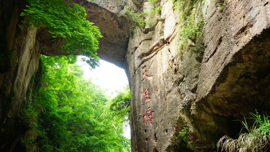 天生桥位于南京市溧水区洪蓝街道,是明太祖朱元璋定都南京后,为沟通南京地区与两浙地区的漕运而建。也是中国仅存的古代人工运河上,横跨两岸巨石而成的天生桥,这种在人工运河上留下巨石而成的天生桥,国内仅此一座,已列为江苏省文物保护单位。 天生桥开凿于明朝洪武二十六年(1393年),北至秦淮河口,南达洪蓝埠入石臼湖,全长7.5公里,组织数十万民工,耗时十年多,焚石凿河十五华里,使得山岗岩石夹杂着紫红,犹如胭脂,胭脂河之名便由此而来。天生桥因河两岸险峻、陡峭、秀丽、幽深,素有“江南小三峡”之称,1990年代初国家水运规划设计院院长胡家明教授称之为“在全国乃至全世界独一无二”。 据史载,朱元璋定都南京,派李新开凿胭脂河,有一天然巨石横于河中,挡住去路,遂利用热胀冷缩原理, 焚石凿河十五华里,中凿石孔十余丈,以通舟楫,上接石臼湖,下连秦淮河,10年劳役死者万人,终于创造出天生桥——胭脂河这样的人间奇迹。桥因势而成,故名"天生"。后人建神工亭以示纪念, 指天生桥为天下一绝,有鬼斧神工之妙。天生桥边立有一石碑,很好地说明了天生桥的神奇,碑上道:“天雨汇集胭脂河,鬼斧神工天生桥!” 南京天生桥景区是国家AAAA级景区,位于溧水城西3公里处,距南京市区50公里。景区总体规划面积6平方公里,核心面积约2平方公里,是一个集生态景观、旅游休闲、度假养生、人文景观与一体的旅游景区,是以秦淮文化、明文化、河运文化为重点,以“文化休闲”为核心的南京郊区旅游胜地。也是金陵新四十八景之凝脂沉霞,国家水利风景区、江苏省文物保护单位、江苏省旅游度假(实验)区、南京市自驾游基地、“咪豆音乐节”的永久举办地。 |